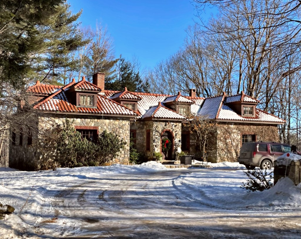 Paul Hunt, the son of famous painter, William Morris Hunt, and the nephew of famed architect Richard Morris Hunt, built this house in Brookline, Massachusetts for $15,000 for him and his wife, Caroline. Paul had been involved in real estate development in Bar Harbor, Maine, where his mother had a summer cottage, and while not an architect himself, he was very interested in design and took a keen interest in developing estates with the family funds. While developing property in the summer enclave of Bar Harbor, Maine, Paul met the Bar Harbor architect, Milton W. Stratton, and the two collaborated in the construction of houses there and two adjacent homes in Brookline. The two-story house is wood frame construction with a stucco finish on the exterior. Spanish Colonial Revival in style, the roof is hipped with terra cotta tile, as is the roof of the verandah which extends across the facade. In 1911, Paul Hunt worked with architect William Ewing Harding to add the two-story wing on the side of the house, which is built over the driveway, creating a really unique (though not as functional) design element.