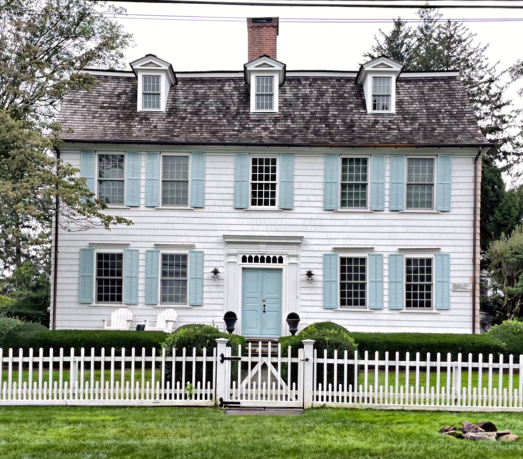 One of the many great old houses in Wayland, Massachusetts, is this well-proportioned Federal style residence at 30 Cochituate Road. The house was built sometime between 1818 and 1821 when owner Mark C. Sibley (1792-1876) married his first wife, Nancy Rice. Mark Sibley was the innkeeper at the Pequod Inn (no longer extant) that had served as an inn and stagecoach stop from when it was built in 1771. Mark Sibley remarried after Nancy died in 1839 and relocated to Weston. The Sibley House was acquired numerous times by real estate speculators. From 1886 until 1922, the property was owned by Anna Bennett, a widow. The five-bay, two-story Federal style house has a center entrance and six-over-six double-hung windows, all with a historically appropriate color scheme.