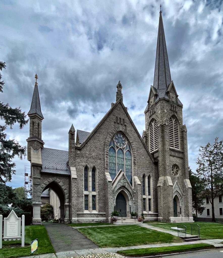 Southport was and still is a part of Fairfield, Connecticut, but it has long been very different from the geographic center of town. Largely due to distance, Fairfield Congregationalists in the Southport area of town sought to establish a new parish to worship closer to home. By the 1840s, their request was granted and a small wood-frame Greek Revival house of worship was built in 1843. By 1871, the increase in population and wealth in the village necessitated a new, larger church. The congregation hired the architectural team of Lambert and Bunnell who made a huge statement here! It is constructed of granite ashlar masonry with a steeply pitched roof and soaring spires.