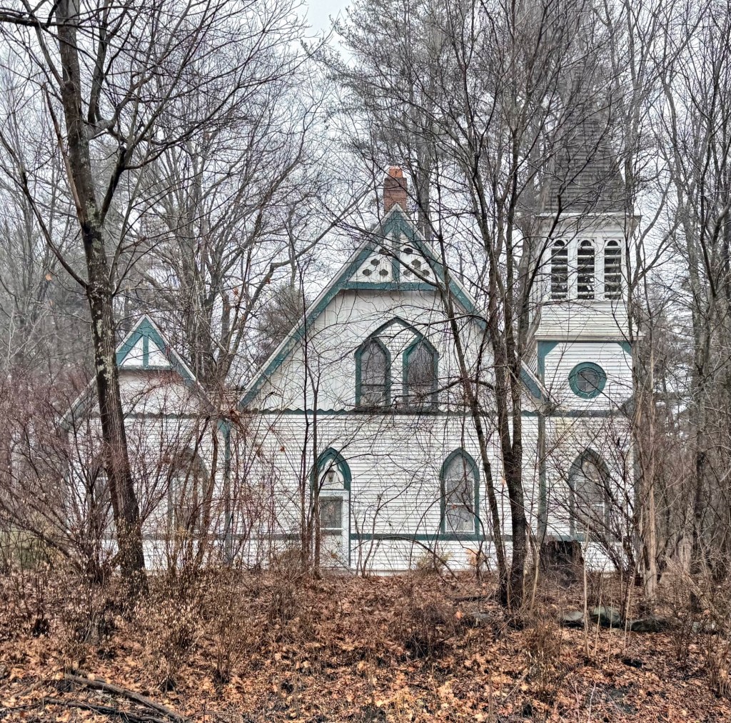 One of the few Gothic style buildings in the enchanting town of Cornwall, Connecticut is this large church-turned-residence in West Cornwall village. As West Cornwall developed in the second half of the 19th century into the largest district in town, residents here began to discuss the idea of building their own Congregational church, rather than travel to the central village church to attend services. In the 1870s, West Cornwall congregationalists raised over $4,000 to acquire a building lot and erect this fine church. Dedicated in January 1878, the wood-frame church is a rare example of the Victorian Gothic/Stick styles with clapboard siding, lancet (pointed arched) windows, a corner tower with belfry, vertical sheathing in the gables, and ornamental applied stickwork. The church closed in the 20th century and was converted to a private residence, and is presently for sale!