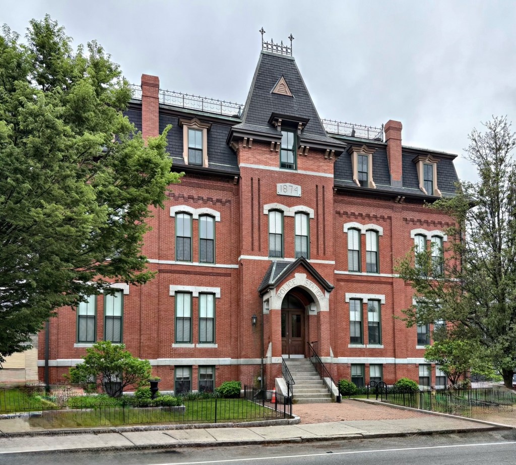 Somerville, Massachusetts, was long part of Charlestown, until it incorporated as a separate town in 1842. From the 1840s until just after the Civil War, Somerville went from a sleepy farming village to manufacturing center, spurring a sharp influx of immigrants to the city, industry boomed and brick manufacturing became the predominant trade. The town of Somerville incorporated as a city in 1872, and one of the first civic buildings constructed as a new city, was this Victorian Gothic building on Bow Street in Union Square to house the growing Somerville Police Station. Built in 1874 from plans by architect, George Albert Clough, a prominent and busy local designer. The handsome station was in use until the new Police Headquarters further east in Union Square was built in 1932. This building was sold off by the city and became offices and housed meeting spaces for a local boy’s club and an American Legion Post until it was converted into housing in the late 20th century.