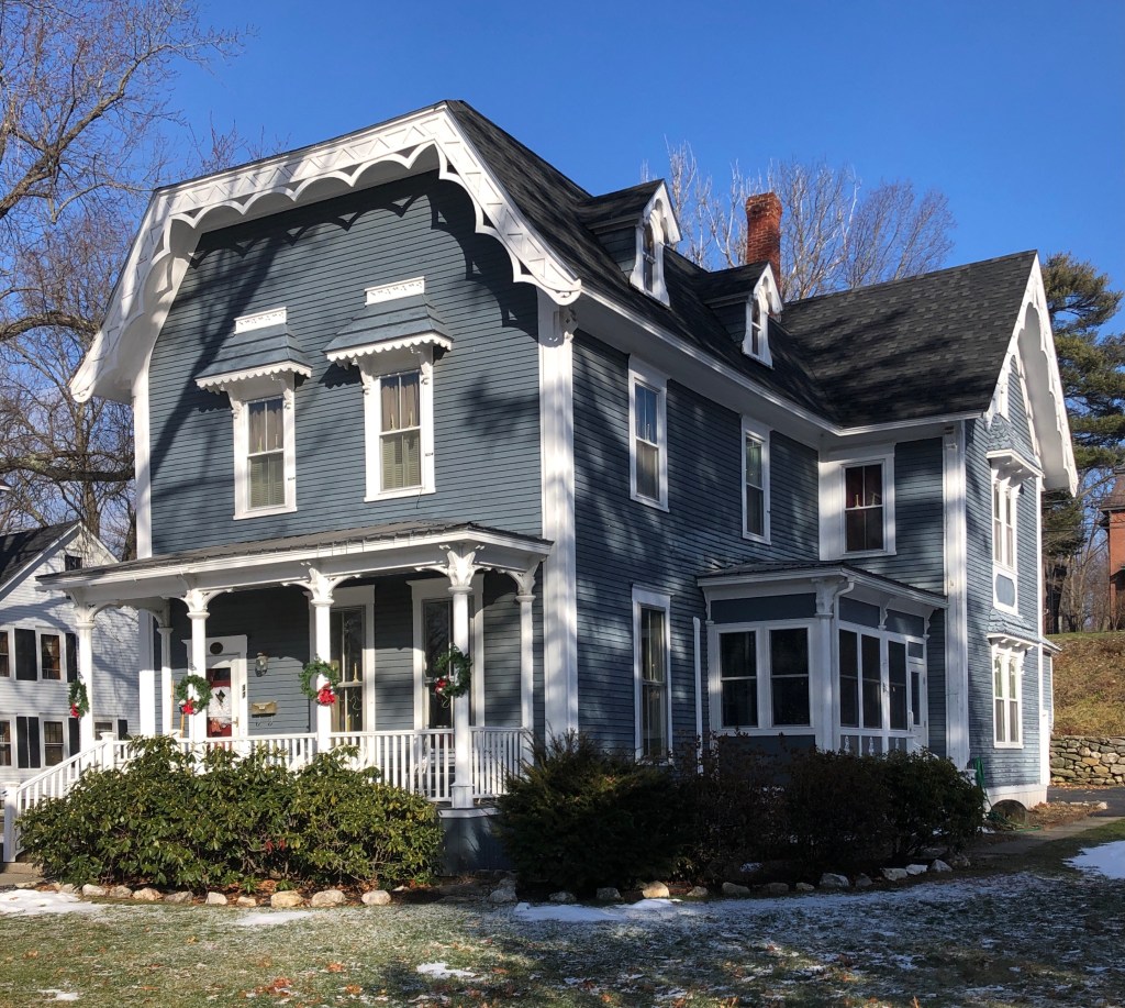 One of the finest Victorian-era residences in Portsmouth, the Jones-Sinclair House at 241 Middle Street, is a stately and oversized Second Empire style mansion built in the location of an even more significant home. Originally on this site, at the convergence of two busy streets, Thomas Haven, a wealthy merchant and half-brother to William Haven who lived across the street, built an impressive brick, Federal style mansion here in around 1818. Admiral George Washington Storer, Commander in Chief of the Brazil squadron of the U.S. Navy, later purchased the Federal style octagonal house. Mary Washington Storer, inherited the house after her father’s death in 1864, and she with her husband, Albert L. Jones, demolished the old octagonal-shaped house around 1865-1867, replacing it with this mansard-villa style mansion. By about 1890, Charles A. Sinclair and his wife, Emma, is said to have received the house as a gift from her uncle, the famous Portsmouth industrialist and politician, Frank Jones.