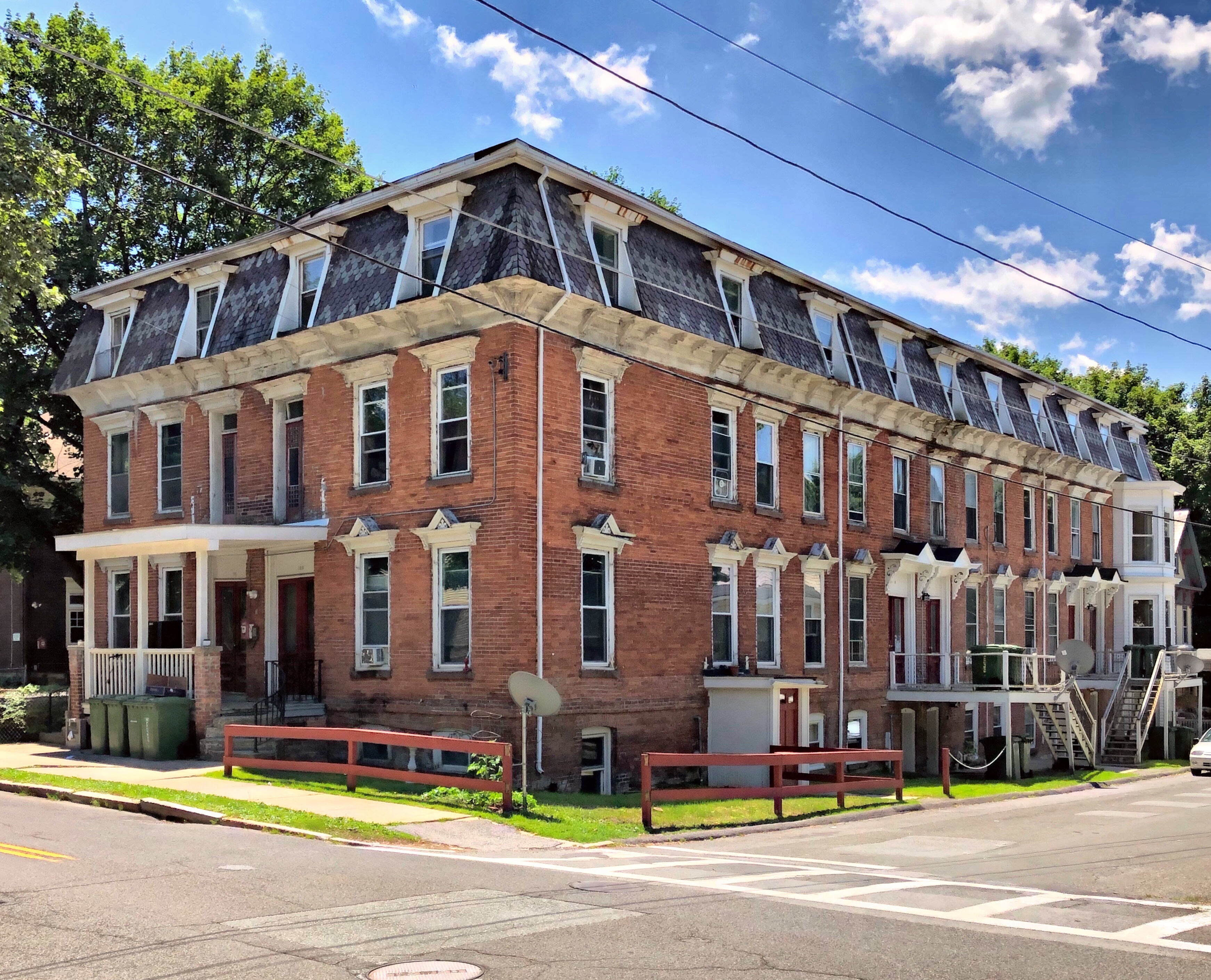 Toward the middle of the 19th-century, the Newton Lower Falls Village developed into a premier paper-manufacturing center of eastern Massachusetts, largely due to the forests and water power supplied by the Charles River. One of the most successful paper mills in the area was owned by Lemuel Crehore (1791-1868), who with his success, built workers cottages for his employees and their families (imagine if businesses did that today)! This Greek Revival workers cottage was occupied by employees of the mill before it was sold when the mill closed, to a house painter. The modest house stands out for the gorgeous wrap-around porch supported by fluted Doric columns, an off-center entrance with sidelights, and corner pilasters.